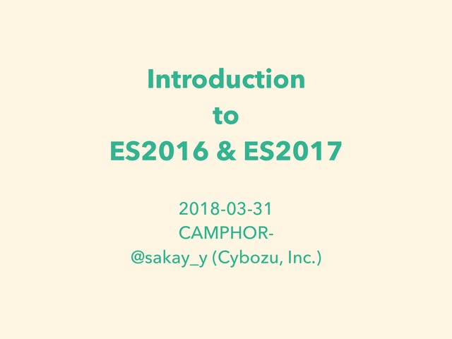 Introduction to ES2016 & ES2017 2018-03-31 CAMPHOR- @sakay_y (Cybozu, Inc.)