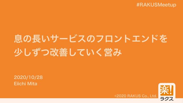 3",64$P -UE 3",64.FFUVQ Eiichi Mita !FJDIJTBOEFO ʹϥΫεʹத్ೖࣾ ϑϩϯτΤϯυɾόοΫΤϯυͲͬͪ ΔΤϯδχΞ ೝఆεΫϥϜϚελʔ