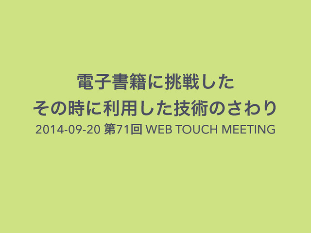 WEB TOUCH MEETING 71 でのセッションスライドです。 http://webtouchmeeting.doorkeeper.jp/events/15334