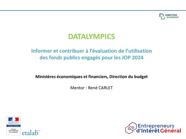 communs de la direction du budget, du parlement et de la Cour des comptes qui visent à : q Contribuer à l’information et l’évaluation du bon emploi des fonds publics, enjeu démocratique majeur q Apporter des solutions pour répondre à un enjeu technique : valoriser les données financières publiques produites en masse par différentes administrations Nous rejoindre, rejoindre la petite communauté construite autour de #dataFin, c’est partager et contribuer à ces objectifs !