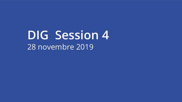 Se retrouver entre DIG Un temps informel pour partager vos expériences, fêter vos succès, et juste revoir les DIG ! Retour sur le programme DIG Temps de partage et de transmission, pour les suites du programme EIG, et aux futurs designers de l’administration DIG Session#4 28.11.19