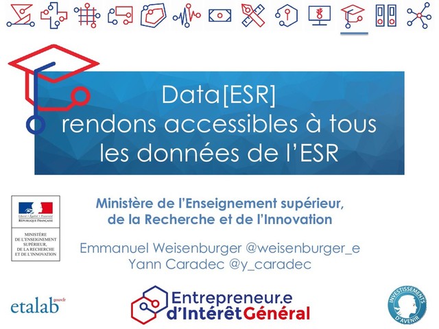 l’analyse des données pour l’ensemble des usagers, professionnels de l’ESR et grand public • Proposer un ensemble de fonctionnalités qui facilitent la navigation dans un vaste corpus d’indicateurs et l’interprétation de l’information • Faire de ce service un outil générique, ouvert et déclinable à d’autres thématiques
