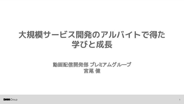 1 大規模サービス開発のアルバイトで得た 学びと成長 動画配信開発部 プレミアムグループ 宮尾 健