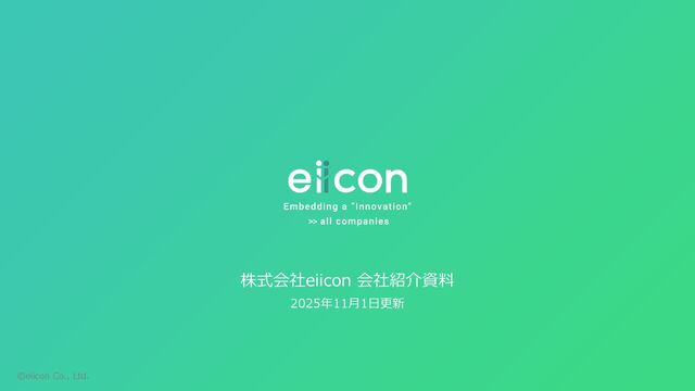 ©eiicon Co., Ltd. 株式会社eiicon 会社紹介資料 2025年11月1日更新 ©eiicon Co., Ltd.