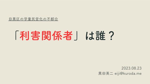 目黒区の学童・児童館民営化において、区民が「利害関係者」と指定され選定委員に入れない状態になっています。