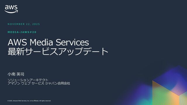 rights reserved. ソフトウェアの対応状況 2025年10⽉現在 46 AWS Deadline Cloud IUUQTBXTBNB[PODPNKQBCPVUBXTXIBUTOFXNBYPODJOFNBESFETIJGUBXTEFBEMJOFDMPVE IUUQTBXTBNB[PODPNKQBCPVUBXTXIBUTOFXBXTEFBEMJOFDMPVEBEPCFBGUFSFGGFDUTTFSWJDFNBOBHFEGMFFUT IUUQTBXTBNB[PODPNKQBCPVUBXTXIBUTOFXBXTEFBEMJOFDMPVENBDPTJOTUBMMFSTVCNJUUFST IUUQTBXTBNB[PODPNKQBCPVUBXTXIBUTOFXBXTEFBEMJOFDMPVEGPVOESZOVLFWFSTJPO IUUQTBXTBNB[PODPNKQBCPVUBXTXIBUTOFXBXTEFBEMJOFDMPVEDJOFNBESFETIJGUMJOVY Linux SMF 対 応 サブミッター インストーラーあり サポートされている UBL対応 Maya Arnold for Maya Houdini Karma / Mantra Blender V-Ray for Maya Unreal Engine KeyShot Studio 3ds Max After Effects Nuke GitHub から取得 Host Config Script で対応 または ユーザー側で Conda Package 作成 BYOL ライセンス持込 ライセンス内容確認 Red Giant / Universe Linux VRED Linux Cinema 4D RedShift for Maya Linux Linux Linux Linux Linux Windows Windows Mac Windows Mac Windows Windows Mac Windows Linux Windows V-Ray for 3dsMax Arnold for 3dsMax Windows Windows Windows Windows Windows Windows Linux SMF対応 サブミッター インストーラー Win/Mac Linux Win/Mac Linux Win/Mac Linux Win/Mac Linux Windows Linux RedShift for Houdini Ver.16 対 応 SMF 対 応 Linux SMF 対 応 Linux SMF 対 応 Mac 対応