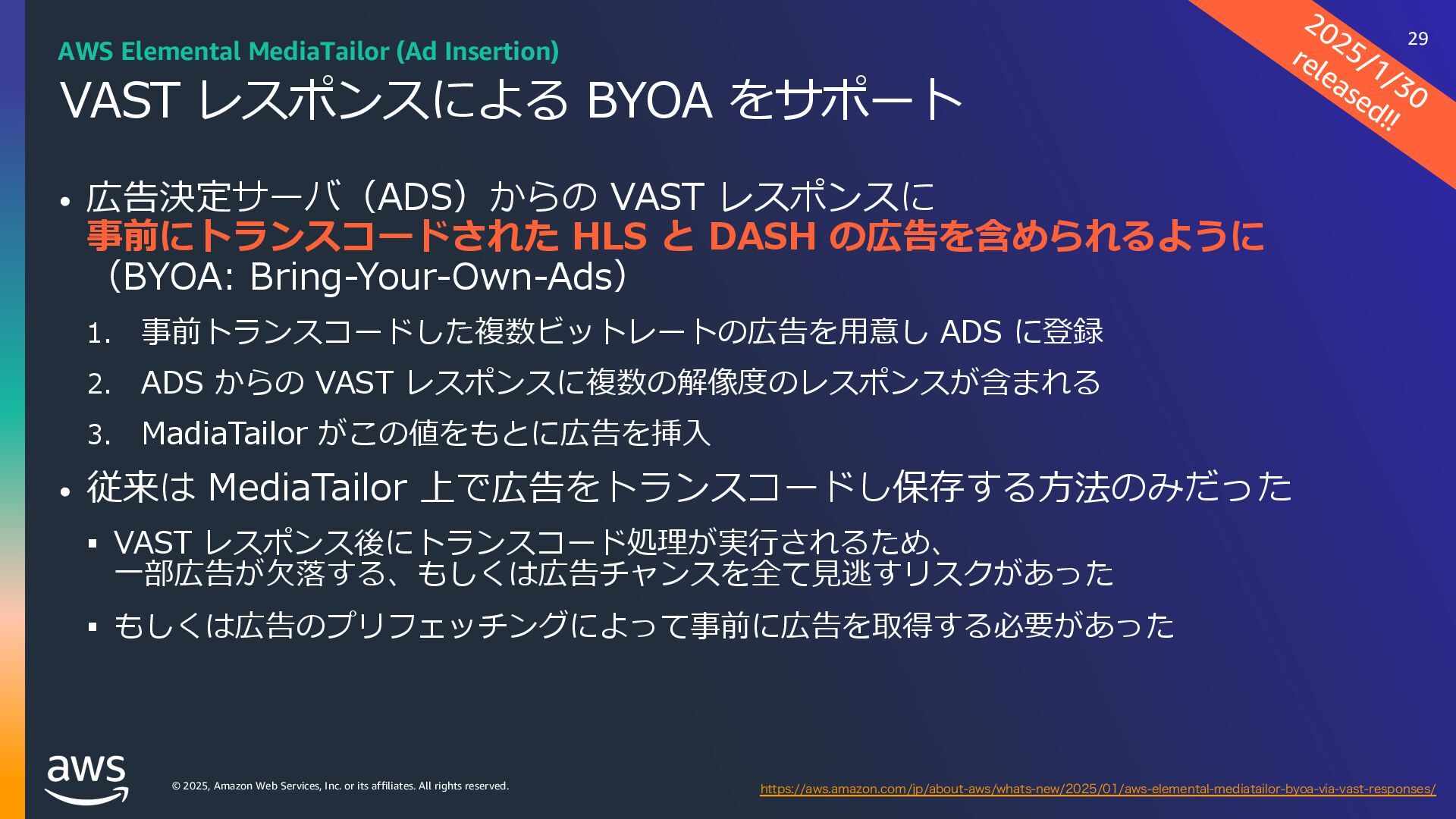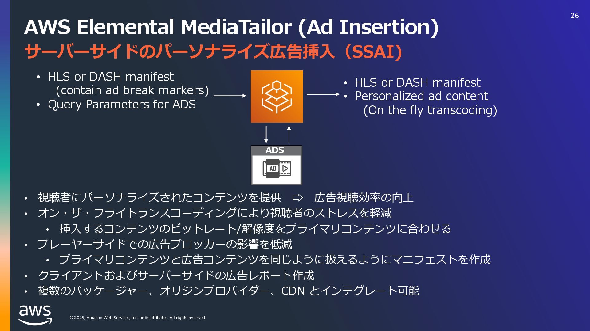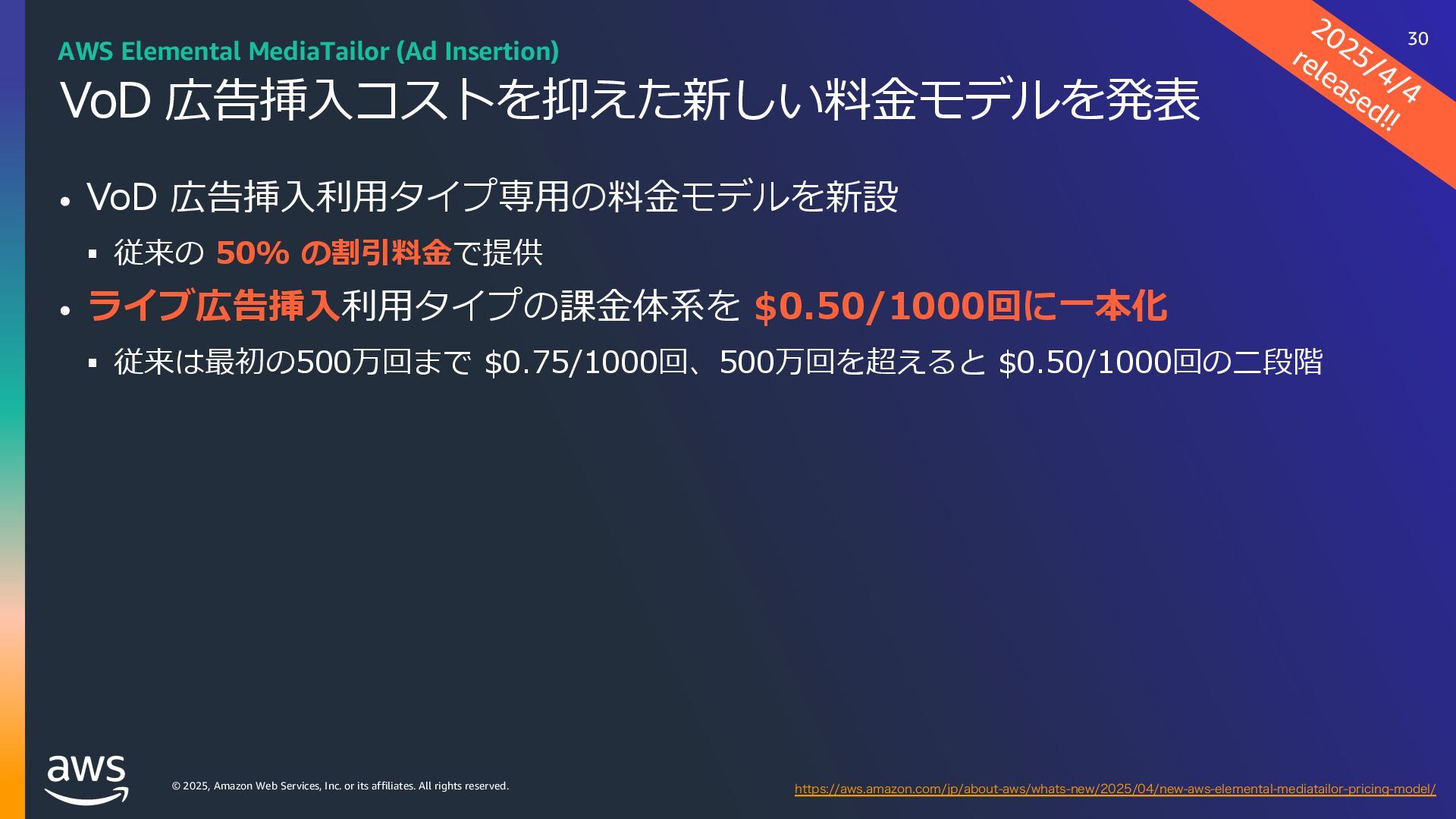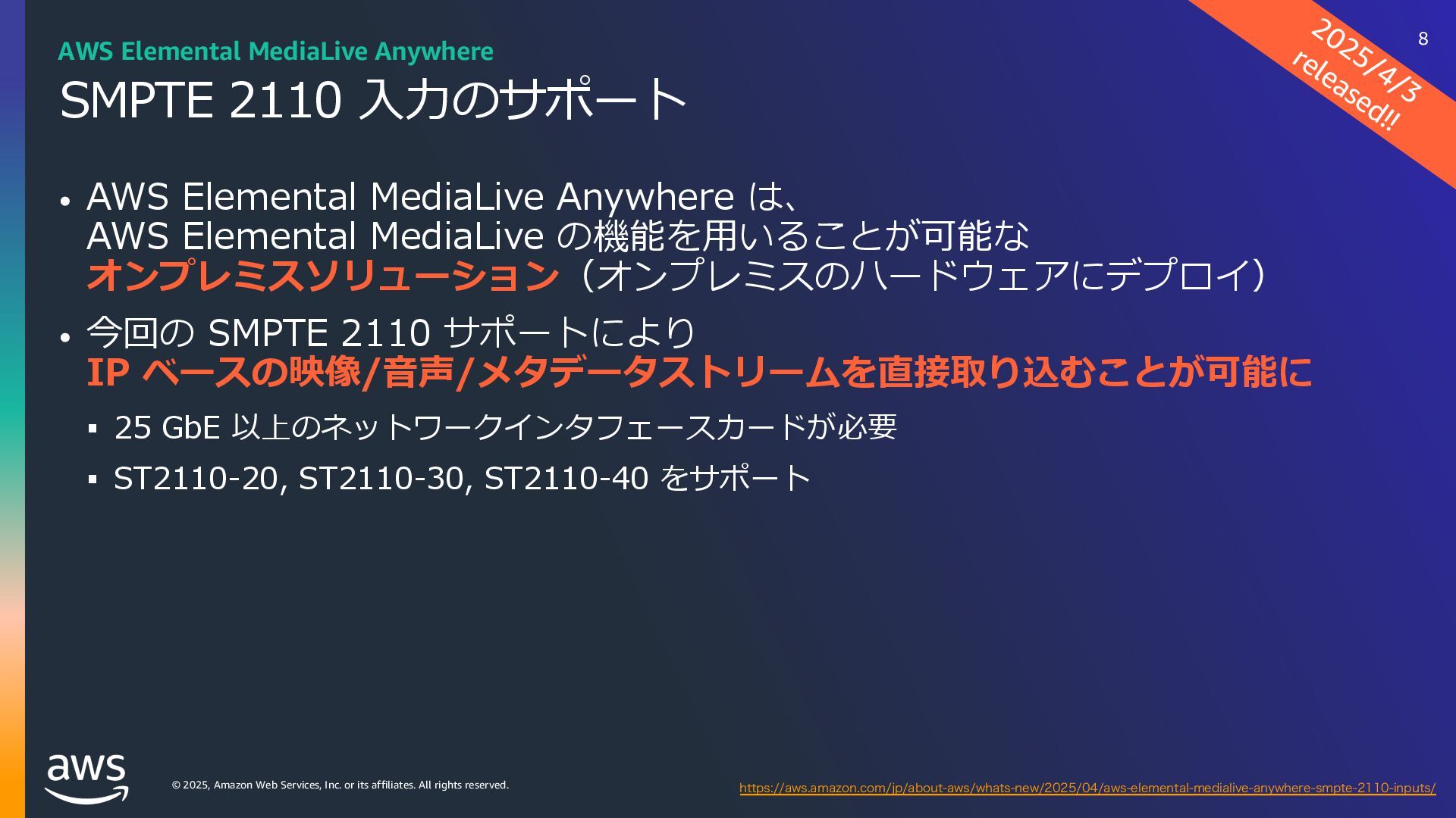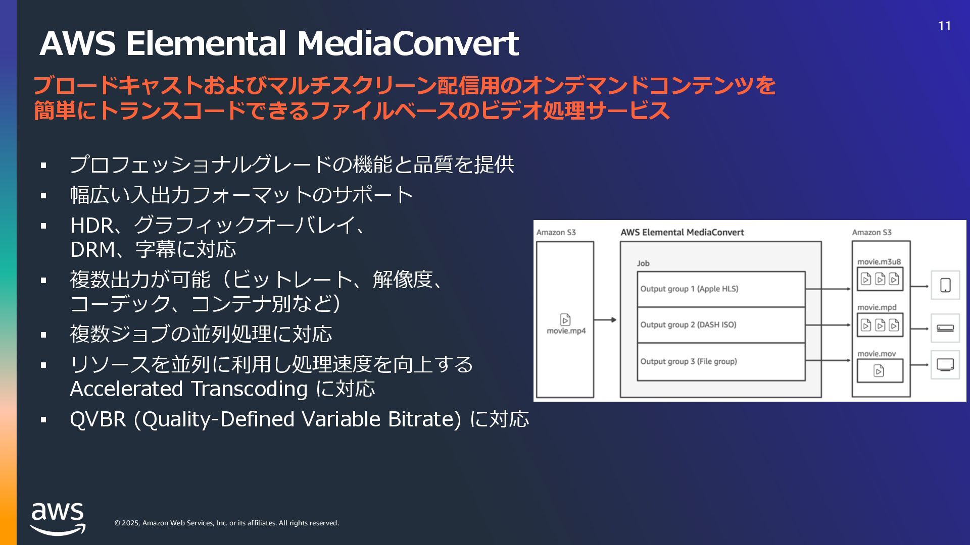 rights reserved. ソフトウェアの対応状況 2025年10⽉現在 45 AWS Deadline Cloud IUUQTBXTBNB[PODPNKQBCPVUBXTXIBUTOFXNBYPODJOFNBESFETIJGUBXTEFBEMJOFDMPVE IUUQTBXTBNB[PODPNKQBCPVUBXTXIBUTOFXBXTEFBEMJOFDMPVEBEPCFBGUFSFGGFDUTTFSWJDFNBOBHFEGMFFUT IUUQTBXTBNB[PODPNKQBCPVUBXTXIBUTOFXBXTEFBEMJOFDMPVENBDPTJOTUBMMFSTVCNJUUFST IUUQTBXTBNB[PODPNKQBCPVUBXTXIBUTOFXBXTEFBEMJOFDMPVEGPVOESZOVLFWFSTJPO IUUQTBXTBNB[PODPNKQBCPVUBXTXIBUTOFXBXTEFBEMJOFDMPVEDJOFNBESFETIJGUMJOVY Linux SMF 対 応 サブミッター インストーラーあり サポートされている UBL対応 Maya Arnold for Maya Houdini Karma / Mantra Blender V-Ray for Maya Unreal Engine KeyShot Studio 3ds Max After Effects Nuke GitHub から取得 Host Config Script で対応 または ユーザー側で Conda Package 作成 BYOL ライセンス持込 ライセンス内容確認 Red Giant / Universe Linux VRED Linux Cinema 4D RedShift for Maya Linux Linux Linux Linux Linux Windows Windows Mac Windows Mac Windows Windows Mac Windows Linux Windows V-Ray for 3dsMax Arnold for 3dsMax Windows Windows Windows Windows Windows Windows Linux SMF対応 サブミッター インストーラー Win/Mac Linux Win/Mac Linux Win/Mac Linux Win/Mac Linux Windows Linux RedShift for Houdini Ver.16 対 応 SMF 対 応 Linux SMF 対 応 Linux SMF 対 応 Mac 対応