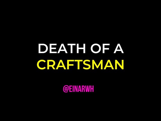What does it mean to be a good software developer? What story can I tell myself that gives me direction and confidence that I am doing a good job? The narrative offered by the software craftsman metaphor is one such story - by far the most prevalent one in today's industry - but could there be others? What are the implications of the craftsman narrative? Does it have any short-comings or things that it fails to mention? Could it be misleading or even harmful? And most importantly: if I don't feel at home in the craftsmanship narrative, am I still allowed to think of myself as a good developer? Is there life beyond craftsmanship?