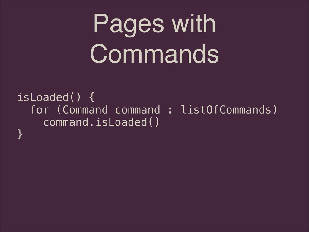 How can you tell if your page is loaded when it is so dynamic? How can you test for everything and yet keep your codebase organized and simple? With the proper application of both the Page Object Pattern and the Command Pattern your codebase can remain organized and elegant. Lets talk about how to apply them together and you can see for yourself.