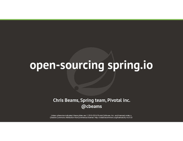 Inc. and licensed under a Creative Commons Attribution-NonCommercial license: http://creativecommons.org/licenses/by-nc/3.0/ 30 a JavaScript application // using curl.js as a module loader! curl.config({! packages: {! app: { location: 'app'}! },! paths: {! leaflet: { location: 'lib/leaflet/dist/leaflet', config: cjsConfig },! jquery: 'lib/jquery/jquery.min', ! }! });! ! // Promises-based API for executing callbacks! curl(['app', 'jquery']).then(start, fail);