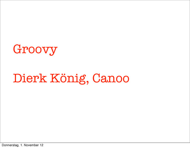 installer, service monitoring, reports, statistics, automated documentation, functional tests, HTML scraping, Web remote control, XML- RPC, REST, WebServices Usages with Ant, Maven, AntBuilder, Gant, Canoo WebTest, Grails scaffolding, ... Examples: sending mails via dynamic Ant scripting, hooking scripts into Ant Donnerstag, 1. November 12