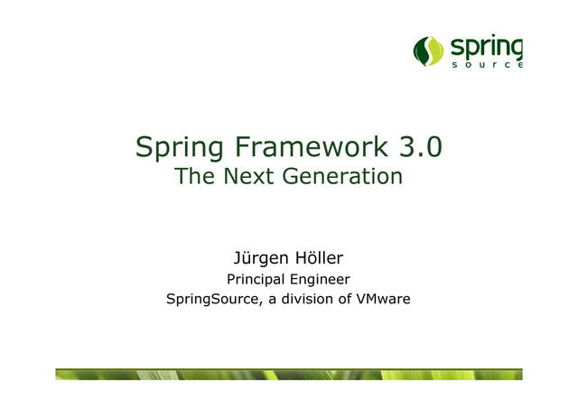 explicit action name concept for dispatching – resource requests for servlet-style serving – events for inter-portlet communication – portlet filters analogous to servlet filters • Spring's Portlet MVC 3.0 to support explicit mapping annotations – @ActionMapping, @RenderMapping, @ResourceMapping, @EventMapping – specializations of Spring's @RequestMapping • supporting action names, window states, etc