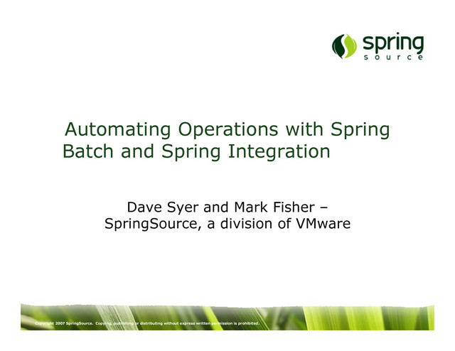 permission is prohibited. 15 Message and Headers public interface Message<T> { MessageHeaders getHeaders(); T getPayload(); } public interface Message<T> { MessageHeaders getHeaders(); T getPayload(); } MessageHeaders headers = message.getHeaders(); String value = headers.get(“key”, String.class); Object id = headers.getId(); long timestamp = headers.getTimestamp(); MessagePriority priority = headers.getPriority(); MessageHeaders headers = message.getHeaders(); String value = headers.get(“key”, String.class); Object id = headers.getId(); long timestamp = headers.getTimestamp(); MessagePriority priority = headers.getPriority();