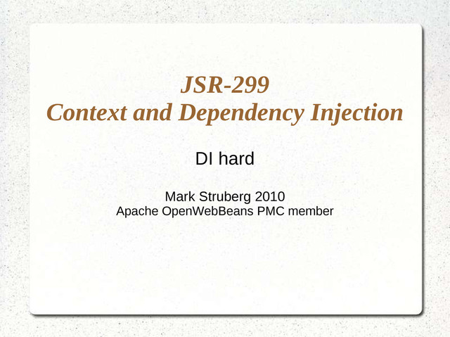 Someone has to trigger the instance creation - even in a DI environment – But the trigger has no control over the Implementation class nor Instance • 'Singletons', Scopes, Contexts, – Each created Contextual Instance is a 'Singleton' in a well specified Context – Session Singleton, ApplicationSingleton, ConversationSingleton, RequestSingleton, ...