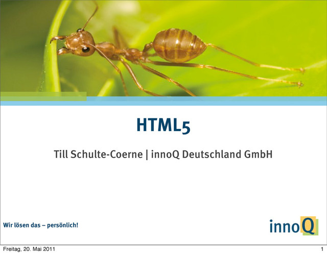 "-//W3C//DTD HTML 4.01//EN" "http://www.w3.org/TR/html4/strict.dtd"> <html lang="de"> <head> <title>HTML4 Dokument</title> <meta http-equiv="Content-Type" content="text/html; charset=utf-8"> </head> <body> <div id="branding"> <h1>Der Header</h1> </div> <ul id="nav"> <li>Die Navigation</li> </ul> <div id="content"> <div id="main"> <h1>Inhalts-Überschrift</h1> <p>Irgend welcher Inhalt...</p> <p class="article-footer">Ein kleiner Footer unter dem Inhalt</p> </div> </div> <div id="sidebar"> <h2>Marginalspalte</h2> <p>Inhalt der Marginalspalte</p> </div> <div id="footer">Der Footer</div> </body> </html> 15 Freitag, 20. Mai 2011