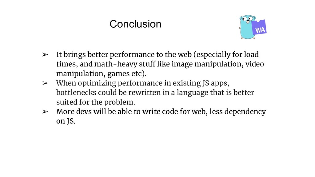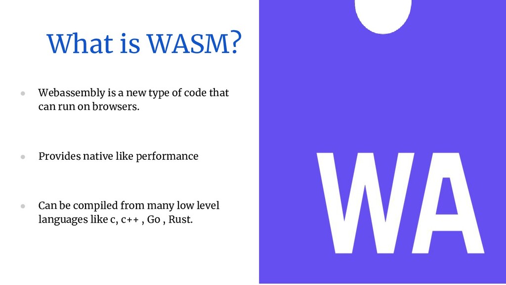 Web Assembly AKA WASM is a new way of running high-level languages into the browsers. Cases where you need to do complex computations like gaming, 3d rendering, AI stuff, etc in any language you want(which has support for WASM), it is something you definitely need to try out.
