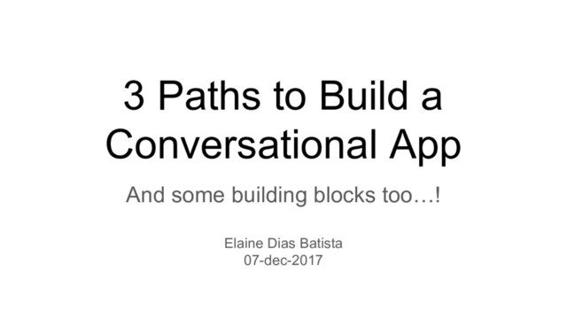 for yourself, for others? (IFTTT or not) - Do you want it to work on every possible device? (design for voice only or screen too) - Google Home (voice only) / Phone, wear, chromecast (voice + text, images) - Does your app require a natural conversation? - Automation, one shot stuff: no (IFTTT, Actions SDK) - Games, news and others: yes (Dialogflow, Actions SDK + TensorFlow) - Do you need information from your DB or an API? (Webhook) - Do you want to integrate the Assistant on your own device? (Assistant SDK) - Do you want to integrate a conversational experience on a Android or iOS app? On Slack? On Facebook messenger? (Dialogflow SDK)
