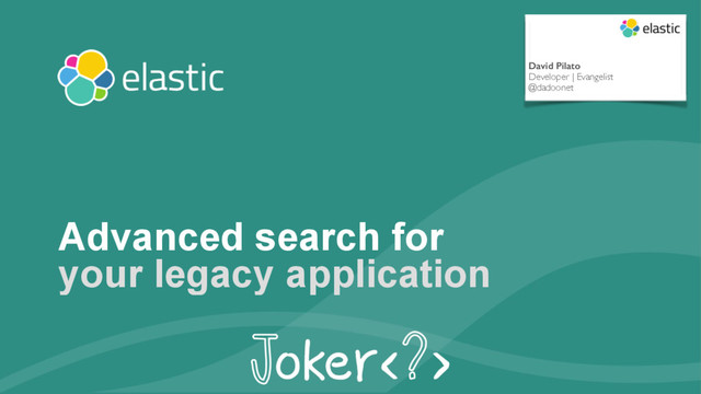 This live coding talk will show you how to add Elasticsearch to your legacy application without changing all your current development habits. Your application will suddenly have advanced search features, all without the need to write complex SQL code!
