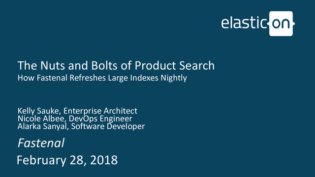 Product, Customer Warehouse (v1.0.0) Initial Discussions With First Developer March First Development Cluster Online April Official Product Search Project Charter Fastenal Becomes Elasticsearch Inc. Support Customer (v.1.1) Built Ugly POC