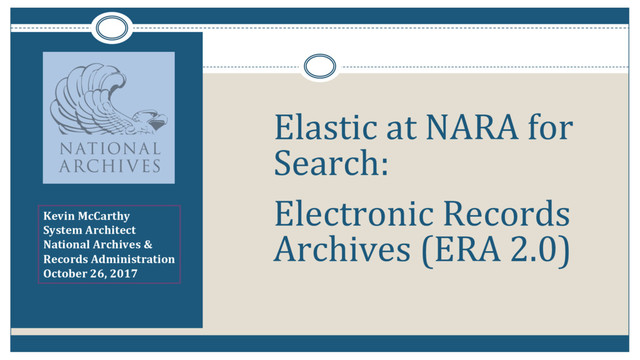 The National Archives and Records Administration is building the next generation of electronic records archives. See how they're planning to use Elasticsearch to power discovery for millions of archived records from federal agencies, judicial proceedings, congressional work, and presidential administrations.