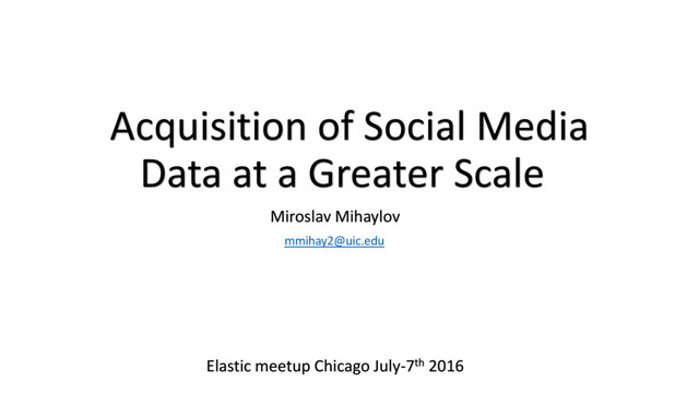 Acquisition of social media data with the Elastic Stack at a greater scale.