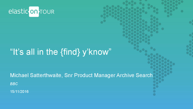 In this presentation Michael outlines how the Elastic Stack has been deployed to meet the challenges of maximising value from the BBC’s archives. Using real world examples see how today’s technology is unlocking yesterday’s content and a vision for the future of media search.