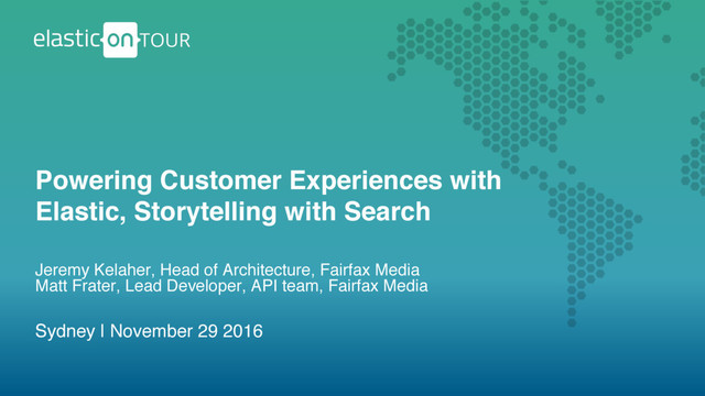 For more than a decade Jeremy has been fascinated with the use of search-based technologies as the primary driver of customer experiences. In this talk, he will reflect on his experience with two live projects for major publishers taking this approach with the Elastic Stack. Lead Developer Matt Frater will then demonstrate the concepts being used at Fairfax Media in new applications such as the well-known GoodFood app and site.
