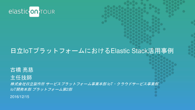 23 Elastic Stackを活用して、FA-IT連携のプロトコル変換/データ変換を実現 FA Edge Device IoT-GW ① 一定間隔で データを読み出し 【生データ】 4001,0083,0301,5349,2D34, 3631,3930,3930,3731,3131, 3334,5357,2D34,3631,3930, 3930,3731,3131,3130,0000, 0000,0000,0000,0000,0000, 0000,0000,5349,2D34,3631, 3930,3930,3731,3031,3032 ② 読み出したデータにタグ付け ④ グラフ表示 lumberjack "data1": 65244, "data2": 51966, "data3": 48879, ... "x-pos": 65.24, "y-pos": 51.966, "z-pos": 48.879, "unit": "qudt:Centimeter" ③ データ加工・整形 ・単位換算 ・桁合わせ (Ingest) (加工/整形) Cloud Kafka { "@timestamp": "2016-09-09T08:02:..", ... "data1": 65244, "data2": 51966, "data3": 48879, ... }