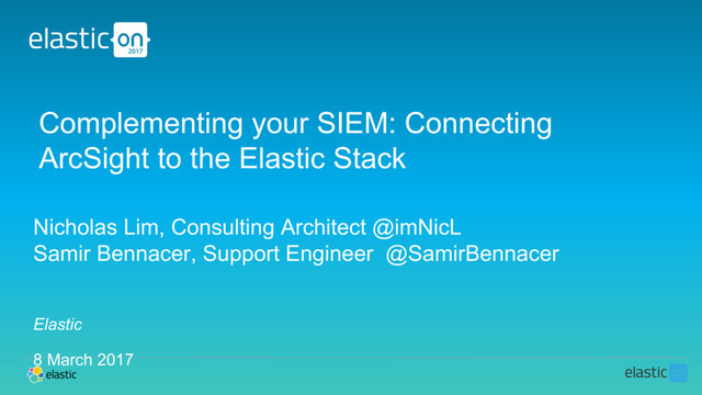 With the release of Logstash 5.1, you can easily connect any device that supports the CEF data format as a codec to the Elastic Stack via files, kafka or syslog. This session will provide a step-by-step guide of how to extend and complement your existing ArcSight deployment with the Elastic Stack. Topics covered will include how to ingest CEF logs to the Elastic Stack using Logstash, visualising dashboards in Kibana, proactively monitoring security data in Elasticsearch using X-Pack alerting features and applying machine learning to identify potential suspicious signatures.