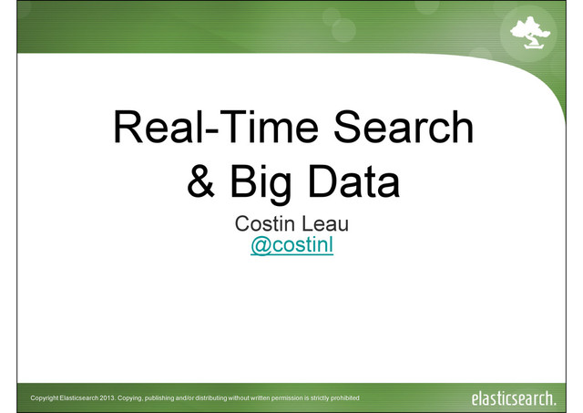 is strictly prohibited Hive - Loading Vanilla Hive (~3s/20s) ES (~22s) ADD JAR /path_to_jar/es-hadoop.jar CREATE TEMPORARY FUNCTION geohash as ' org.es.example.hive.GeoHash()'; CREATE EXTERNAL TABLE ufo (sight BIGINT, report BIGINT, location STRING, shape STRING, duration STRING, description STRING) STORED BY 'org.elasticsearch.hadoop.hive.ESStorageHandler' TBLPROPERTIES('es.location' = ufo/sightings'); INSERT OVERWRITE TABLE ufo SELECT s.sight, s.report, geohash(location), s.duration, s.description FROM source s; CREATE TABLE source (sight BIGINT, report BIGINT, location STRING,shape STRING, duration STRING, description STRING); LOAD DATA INPATH ‘ufo.dat' OVERWRITE INTO TABLE source; INSERT OVERWRITE TABLE geoSource SELECT s.sight, s.report, geohash(location), s.duration, s.description FROM source;
