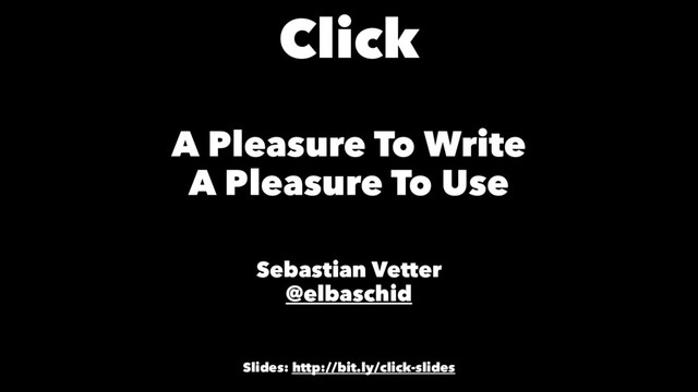 Vetter @elbaschid Slides: http://bit.ly/click-slides