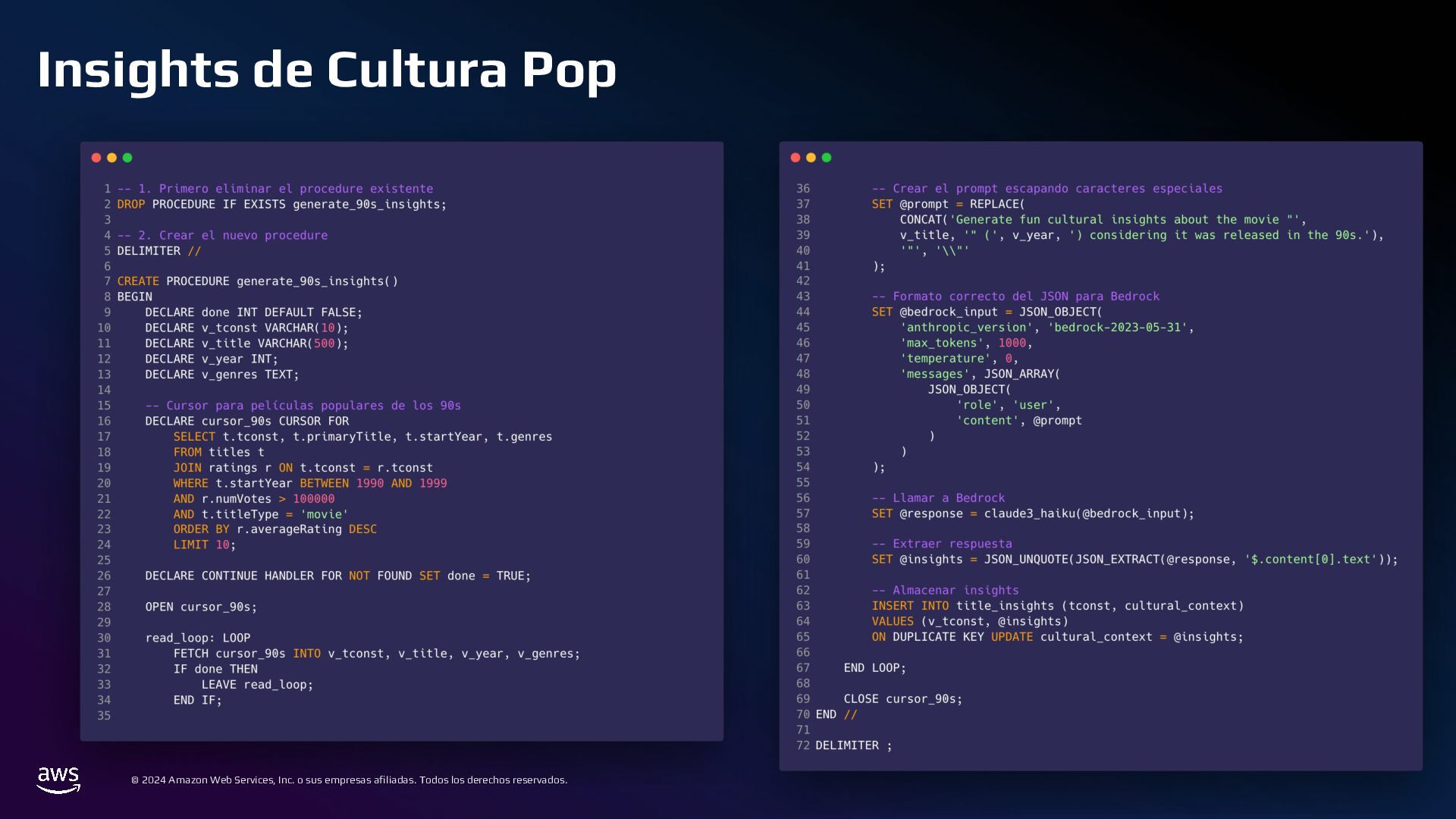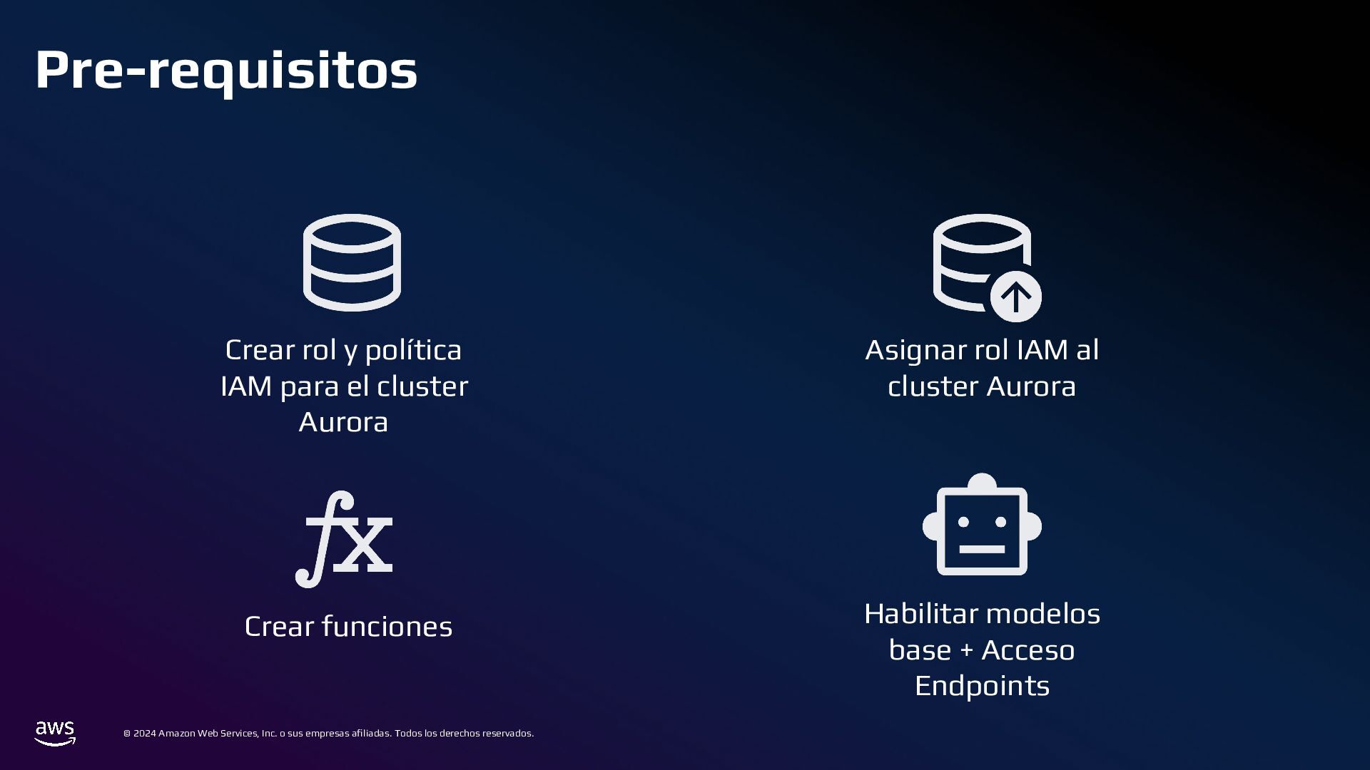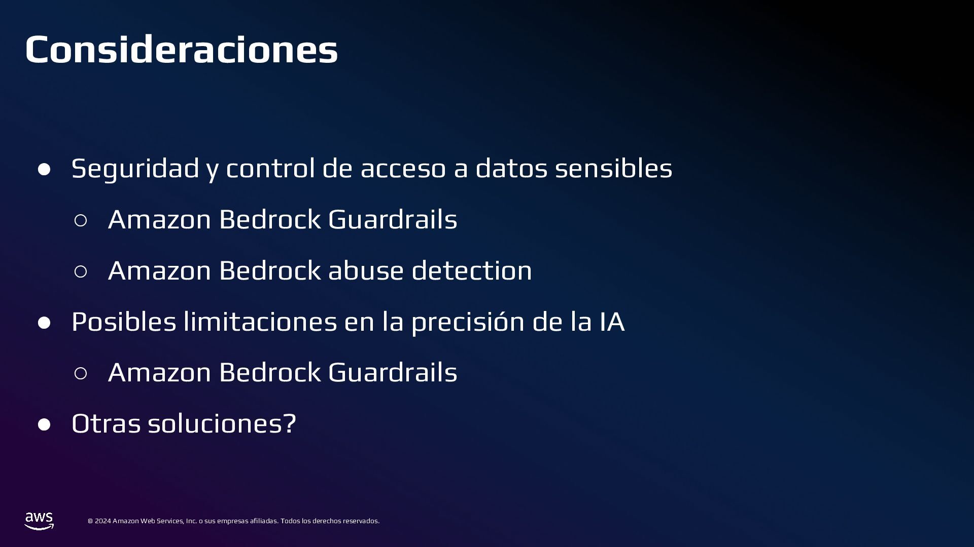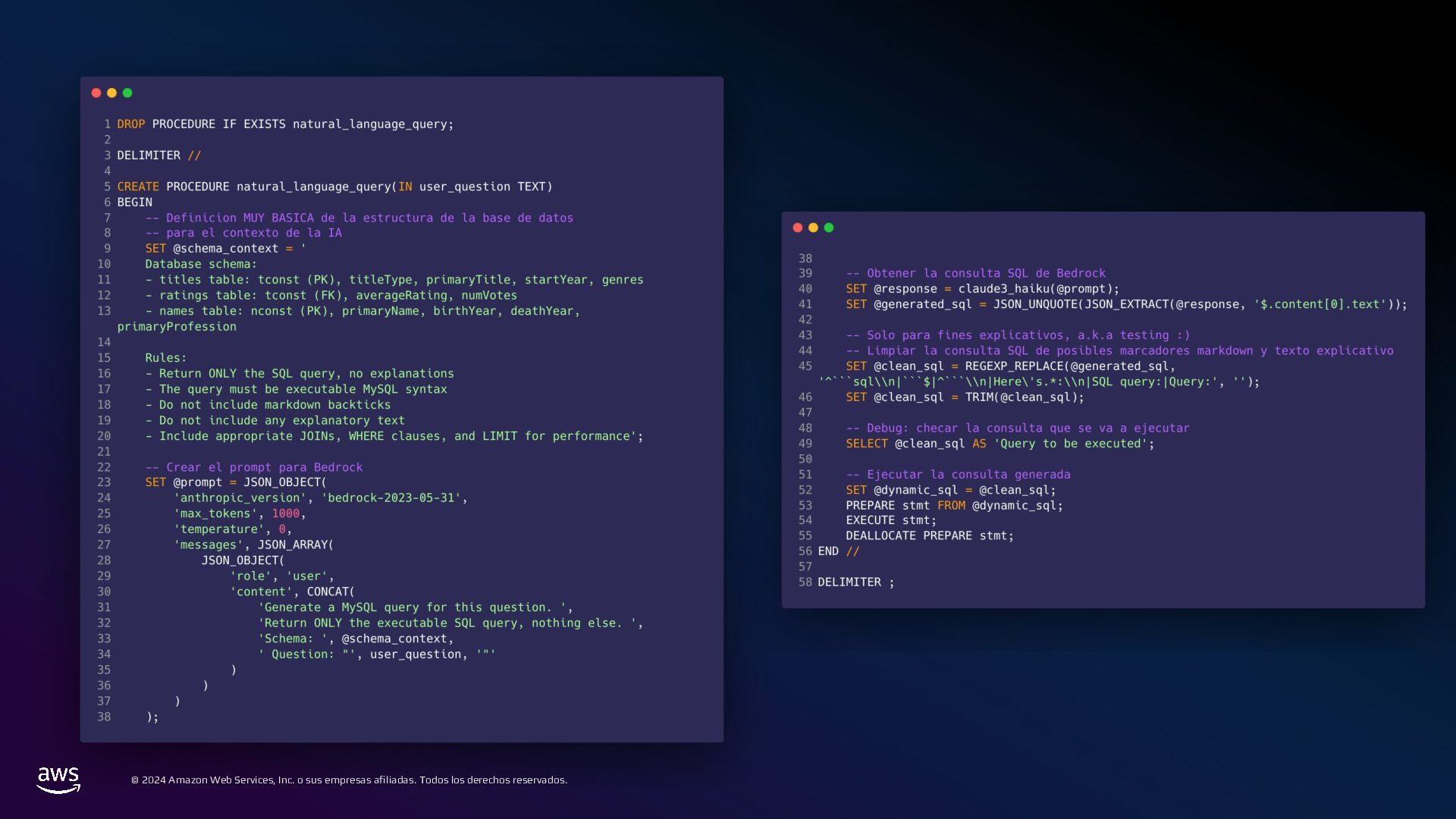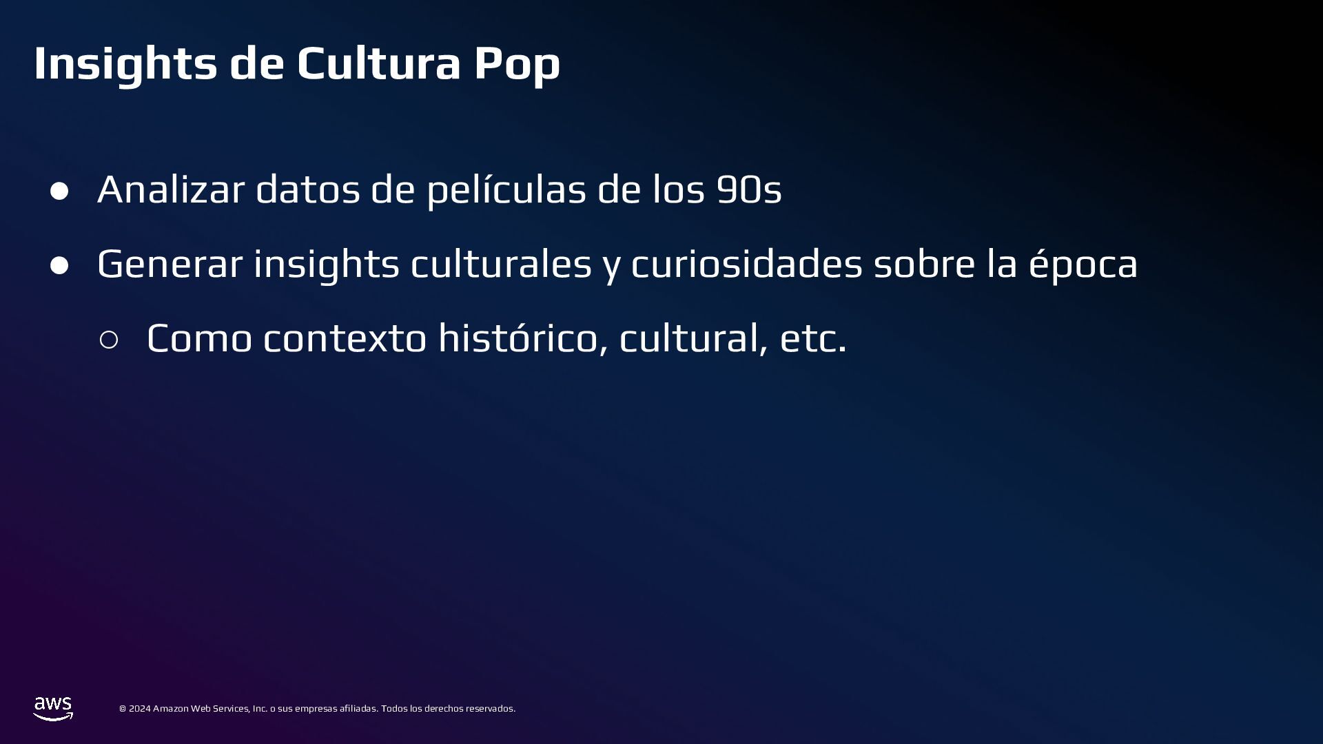 En esta charla mostraremos cómo AWS Bedrock puede conectarse a una base de datos tradicional, comprender su estructura, y generar consultas a partir de preguntas en lenguaje cotidiano. Este mecanismo permite crear integraciones para que usuarios de diversos perfiles puedan acceder y analizar datos complejos de manera eficiente.
