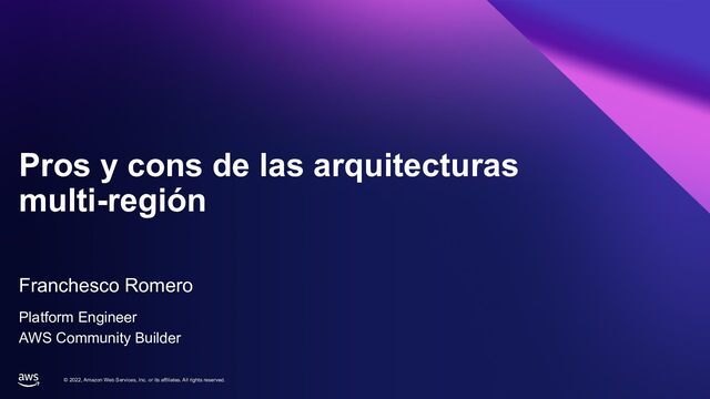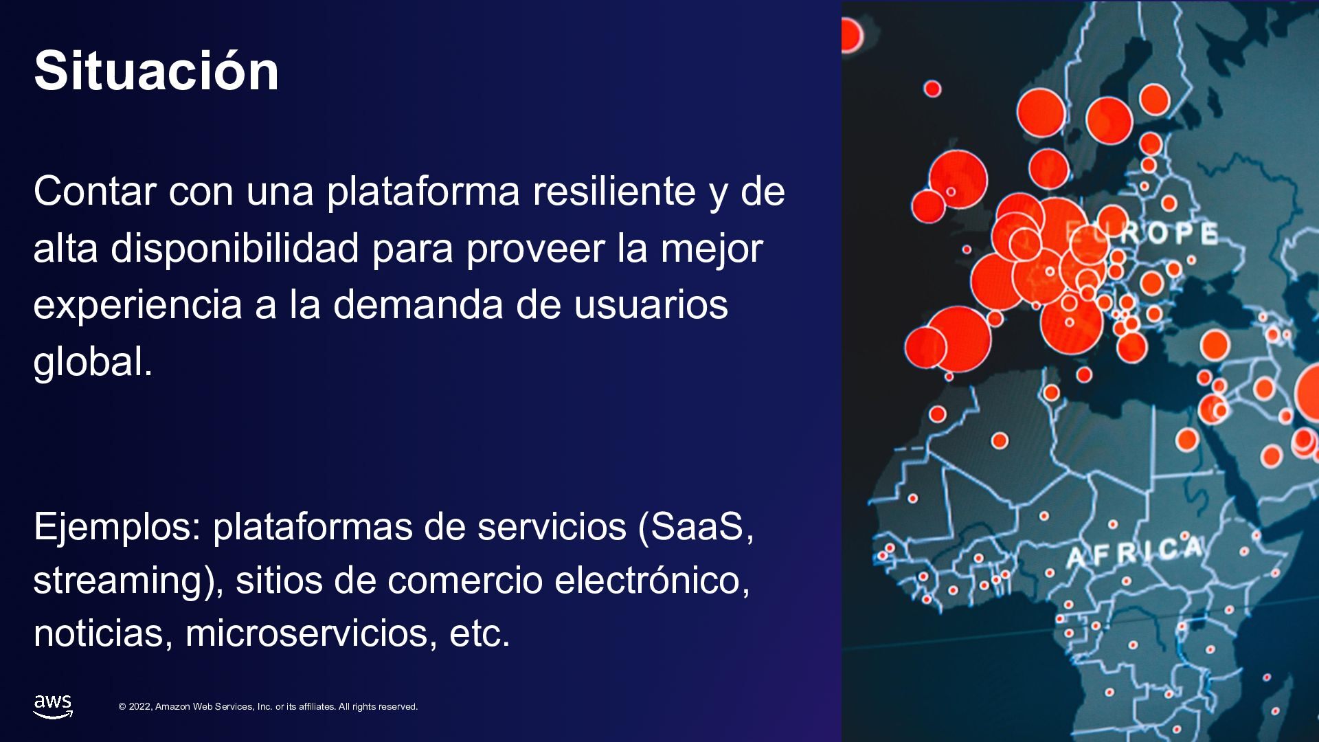 rights reserved. Situación Contar con una plataforma resiliente y de alta disponibilidad para proveer la mejor experiencia a la demanda de usuarios global. Ejemplos: plataformas de servicios (SaaS, streaming), sitios de comercio electrónico, noticias, microservicios, etc.