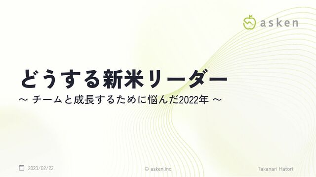どうする新米リーダー 〜 チームと成長するために悩んだ2022年 〜 © asken.inc Takanari Hatori 2023/02/22