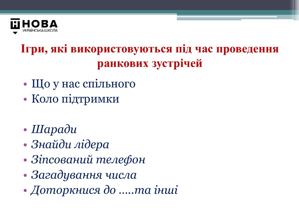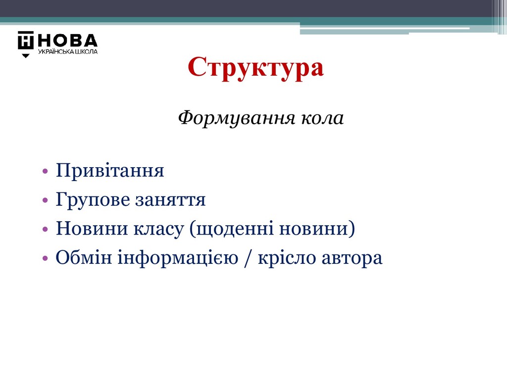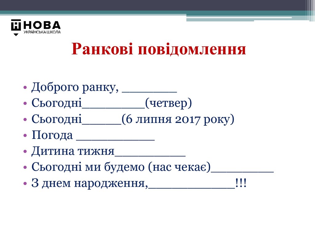 • Сприяють створенню живої, відкритої і дружньої атмосфери на весь день • Сприяють виробленню правил • Створюють індивідуальні та колективні можливості для участі у спільній роботі • Переконують дітей у тому, що участь кожного з них у спільній роботі має велике значення • Сприяють розвитку важливих академічних навичок: слуханню співрозмовника, мовленню, узагальненню отриманої інформації, прийняттю рішень, читанню, письму, правопису та математиці