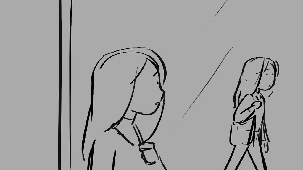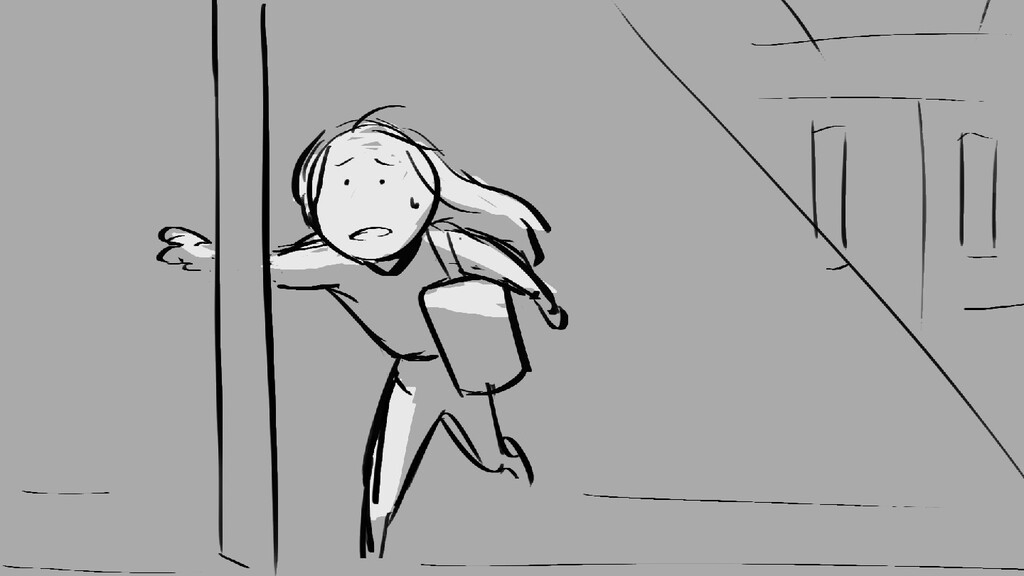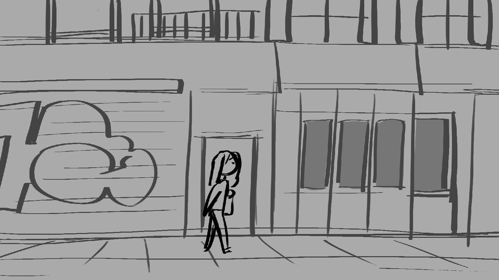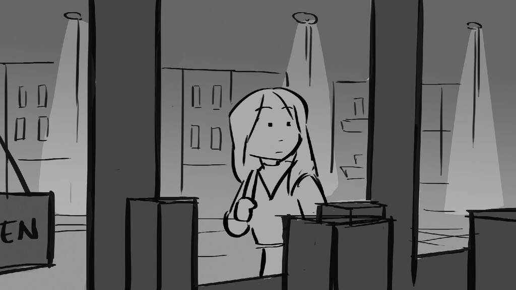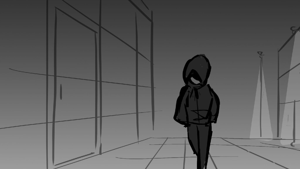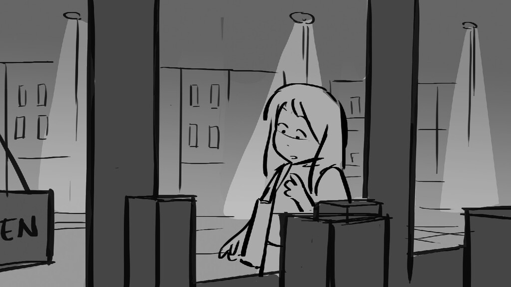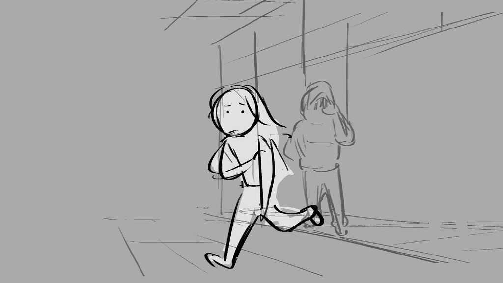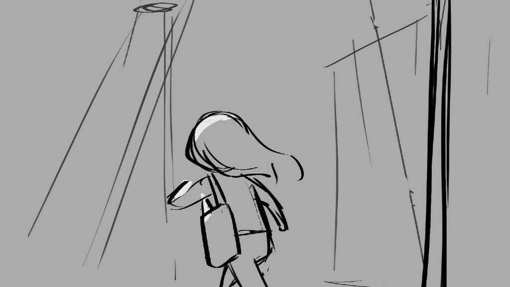 A girl walks home alone at night.