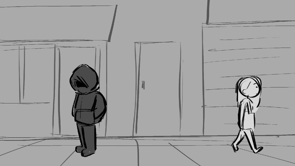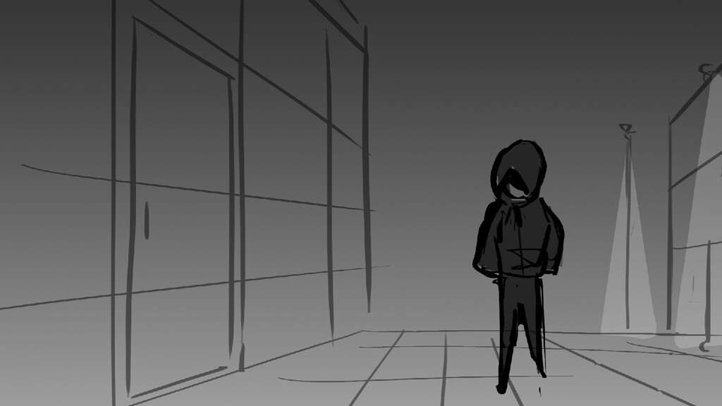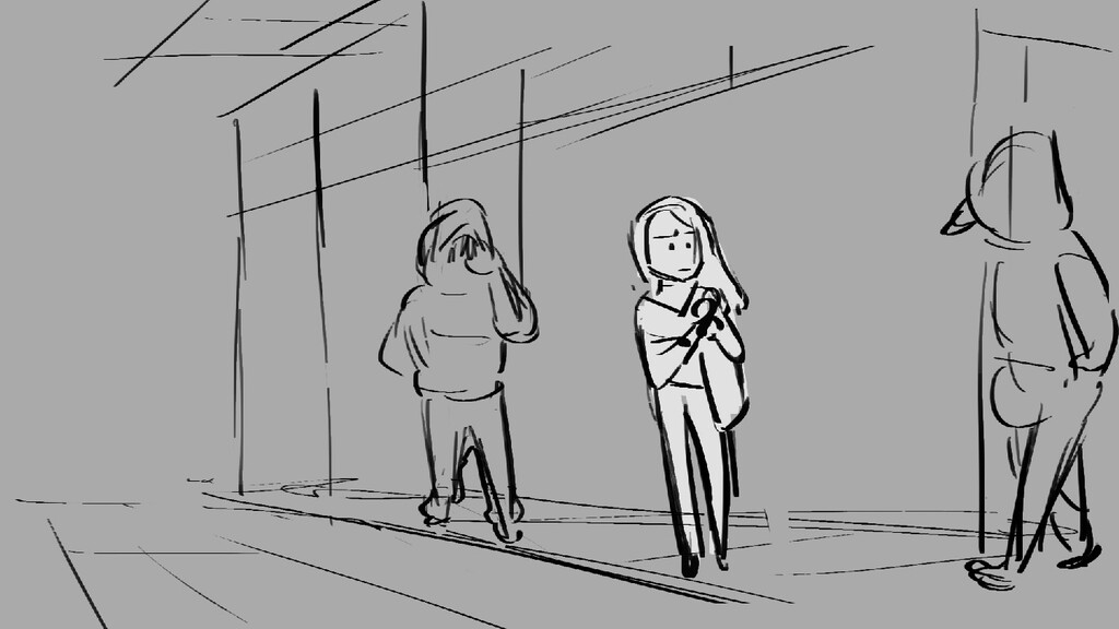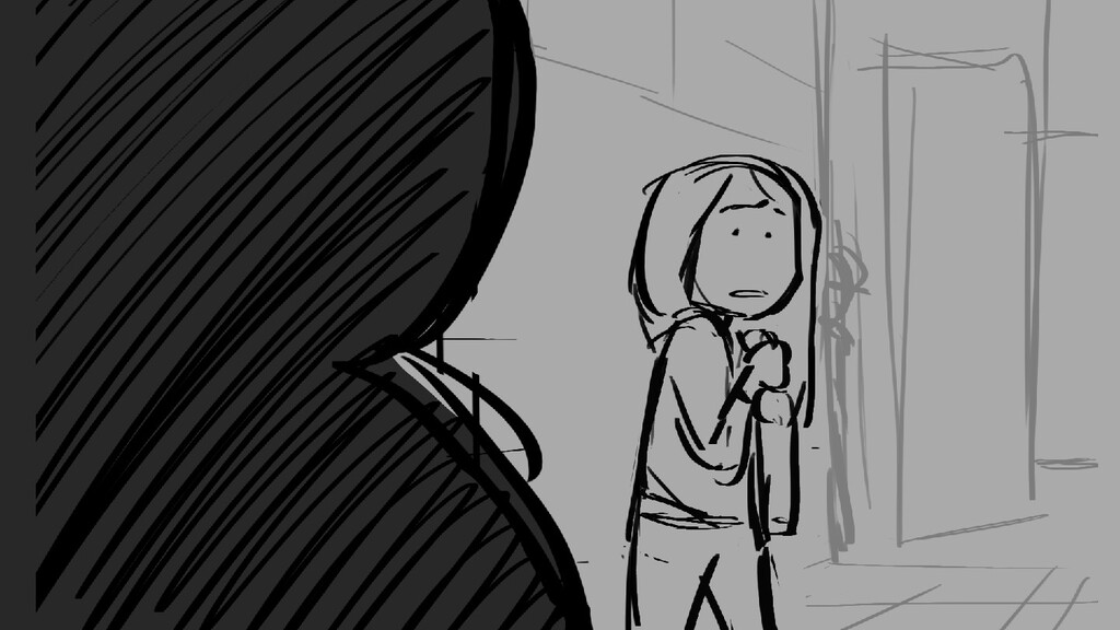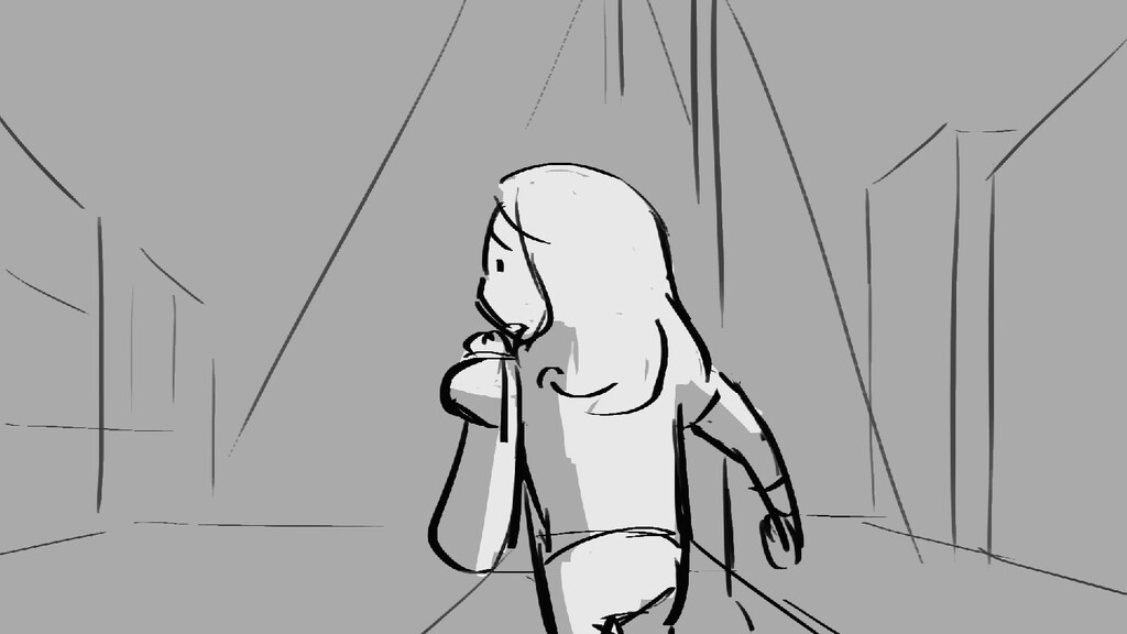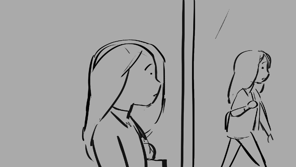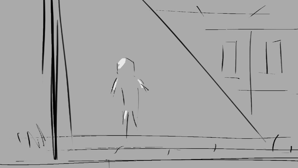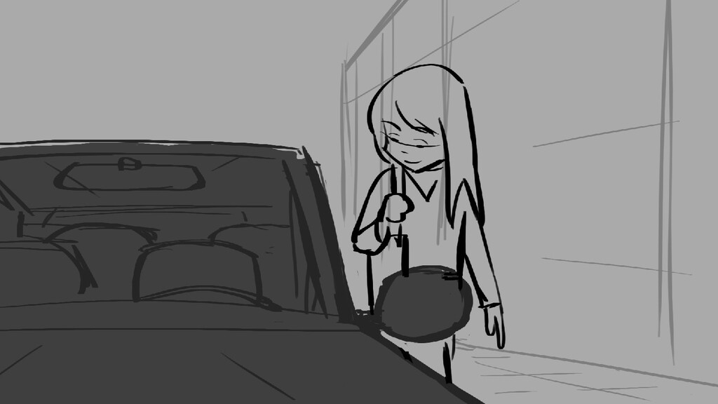 A girl walks home alone at night.
