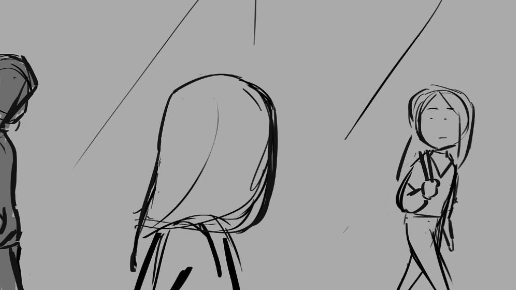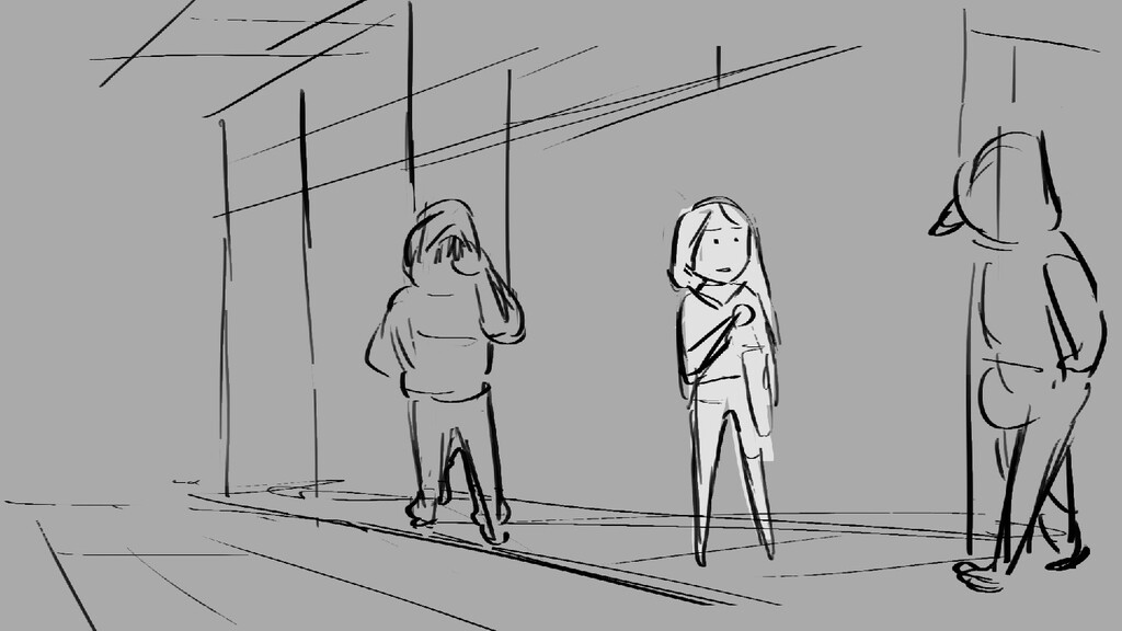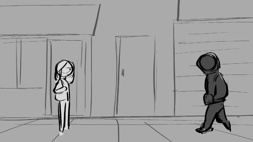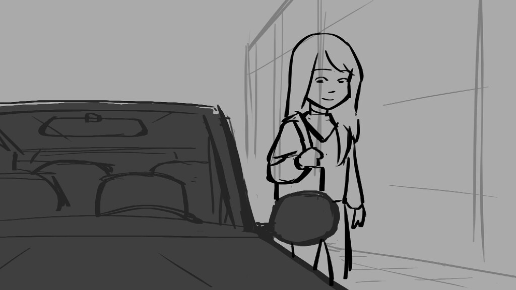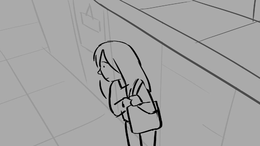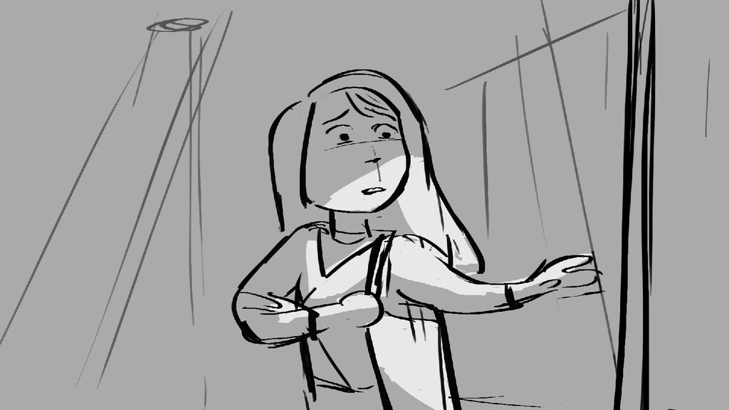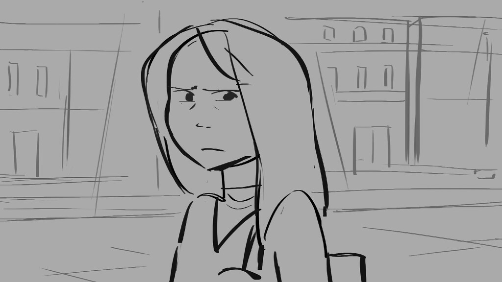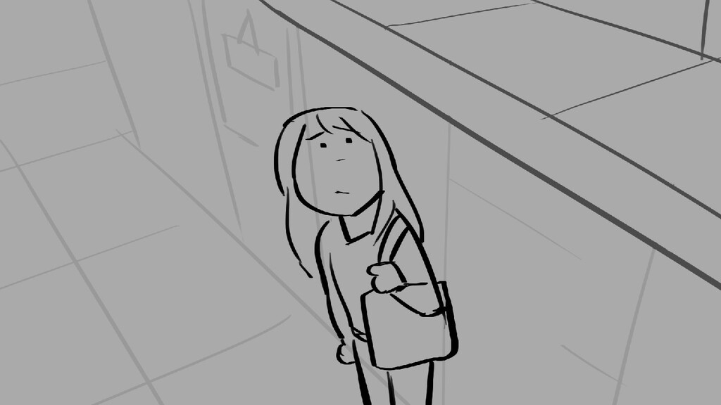 A girl walks home alone at night.