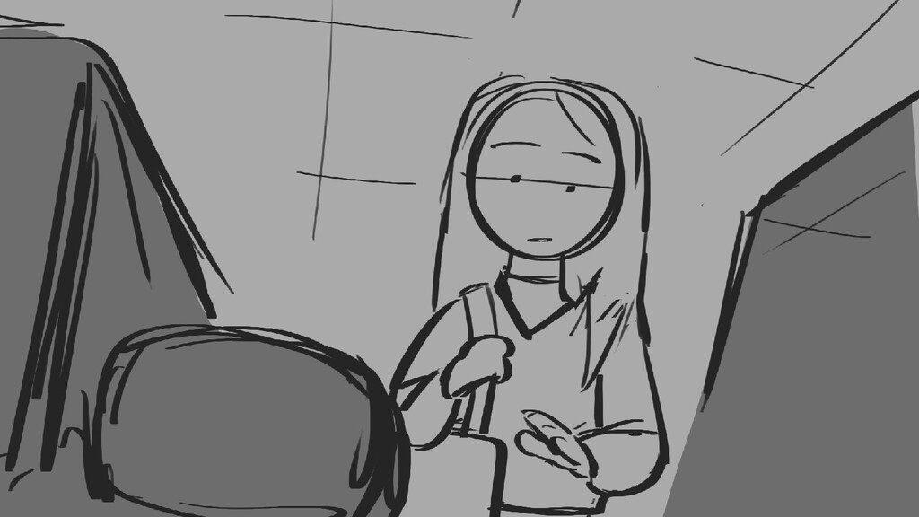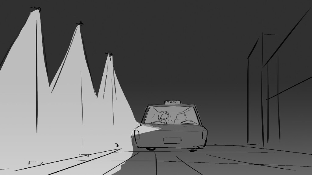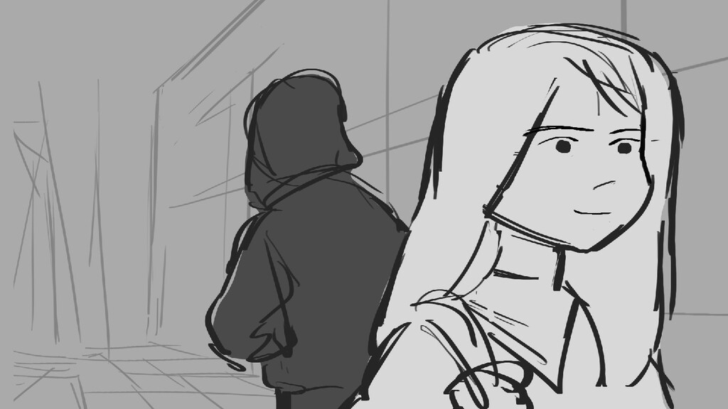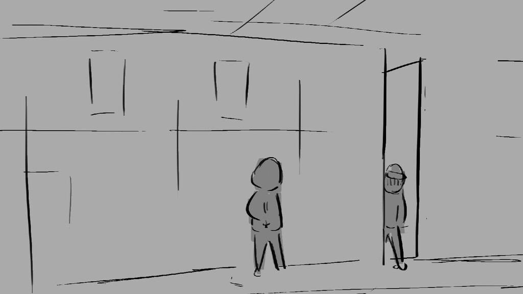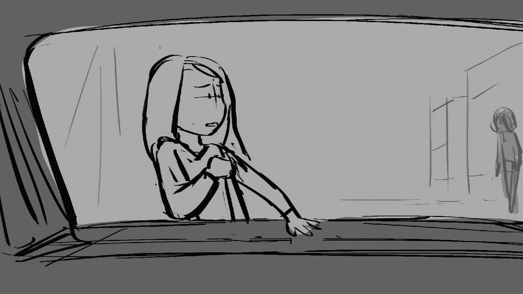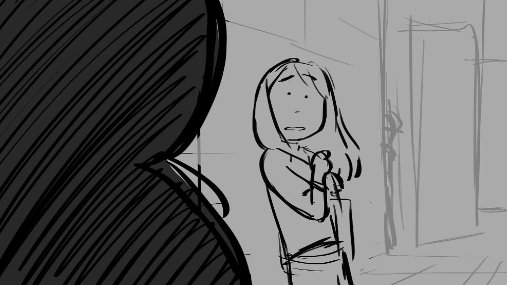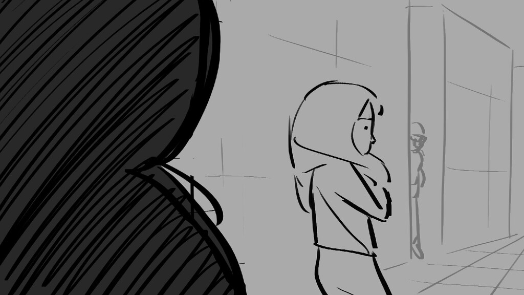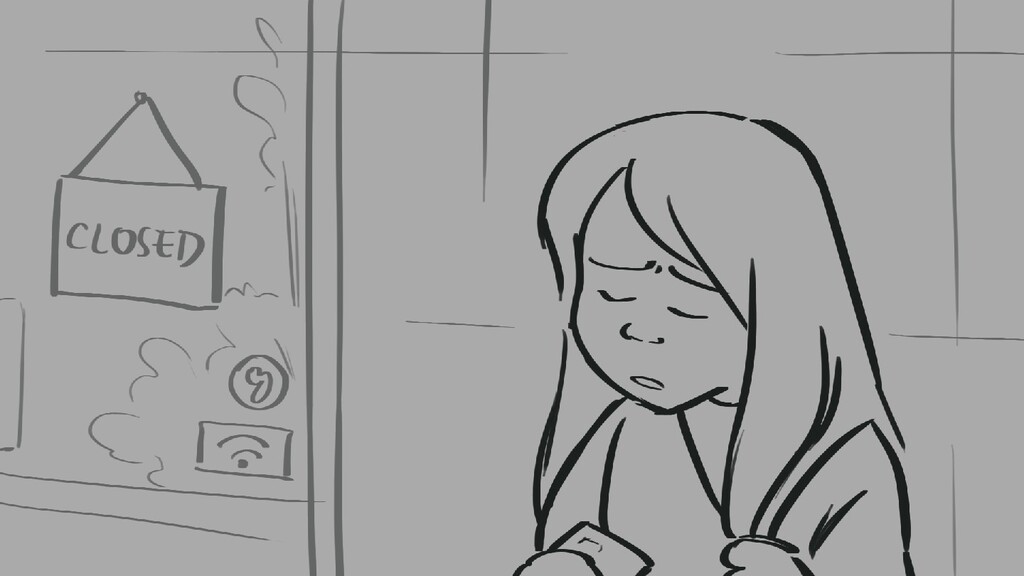 A girl walks home alone at night.