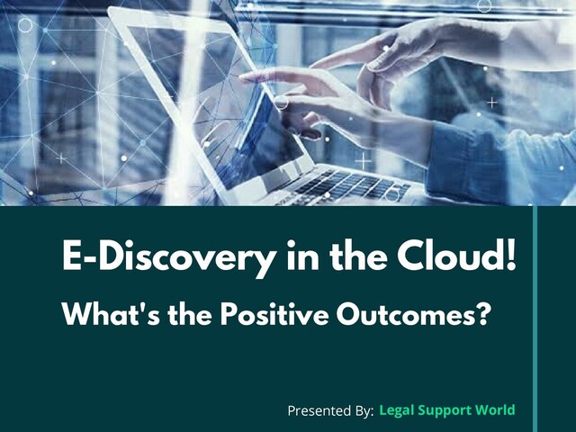A few years ago, e-discovery in the cloud wasn’t even available. Now everything is on the cloud platform. Check out this presentation to know the positive outcomes of e-discovery in the cloud.