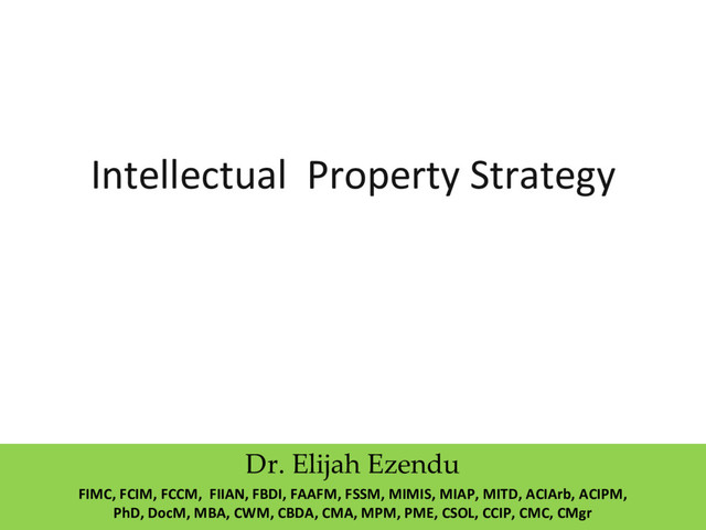1. Intellectual Property Strategy Dr. Elijah Ezendu FIMC, FCIM, FCCM, FIIAN,