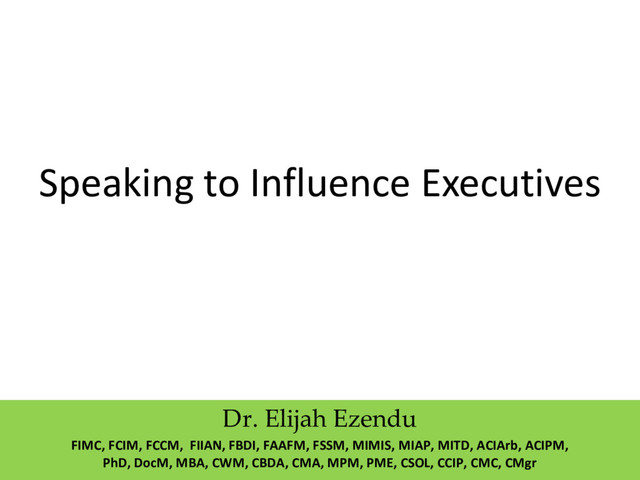 Consultant with expertise in Interim Management, Strategy, Competitive Intelligence, Transformation, Restructuring, Turnaround Management, Business Development, Marketing, Project & Cost Management, Leadership, HR, CSR, e-Business & Software Architecture. He had functioned as Founder, Initiative for Sustainable Business Equity; Director, Archtalento; Director, Speakers Africana; Chairman of Board, Motus Health Initiative; Chairman of Board, Charisma Broadcast Film Academy; Group Chief Operating Officer, Idova Group; CEO, Rubiini (UAE); Special Advisor, Road Transport Employers Association of Nigeria; Director, MMNA Investments; Chair, Int’l Board of GCC Business Council (UAE); Senior Partner, Shevach Consulting; Chairman (Certification & Training), Coordinator (Board of Fellows), Lead Assessor & Governing Council Member, Institute of Management Consultants, Nigeria; Lead Resource, Centre for Competitive Intelligence Development; Lead Consultant/ Partner, JK Michaels; Turnaround Project Director, Consolidated Business Holdings Limited; Technical Director, Gestalt; Chief Operating Officer, Rohan Group; Executive Director (Various Roles), Fortuna, Gambia & Malta; Chief Advisor/ Partner, D & E; Vice Chairman of Board, Refined Shipping; Director of Programmes & Governing Council Member, Institute of Business Development, Nigeria; Member of TDD Committee, International Association of Software Architects, USA; Member of Strategic Planning and Implementation Committee, Chartered Institute of Personnel Management of Nigeria; Country Manager (Nigeria) & Adjunct Faculty (MBA Programme), Regent Business School, South Africa; Adjunct Faculty (MBA Programme), Ladoke Akintola University of Technology; Editor-in-Chief, Cost Management Journal; Member of National Executive Council, Institute of Internal Auditors of Nigeria; Member, Board of Directors (Several Organizations). He holds Doctoral Degree in Management, Master of Business Administration and Fellow of Professional Institutes in North America, UK & Nigeria. He is an Innovator of heralded frameworks: Among other things, Corporate Investment Structure Based on Financials and Intangibles, for all-inclusive valuation, highlighting intangible contributions of host communities and ecological environment. It’s a model celebrated internationally (including Social Innovation Side Event of 2016 United Nations Climate Change Conference COP22 in Marrakech, Morocco) as remedy for unmitigated depreciation of ecological capital and developmental deprivation of host communities. He had served as Examiner to various Professional Institutes and External Examiner to Universities. He had been a member of Guild of Soundtrack Producers of Nigeria. He's an author and extensively featured speaker.