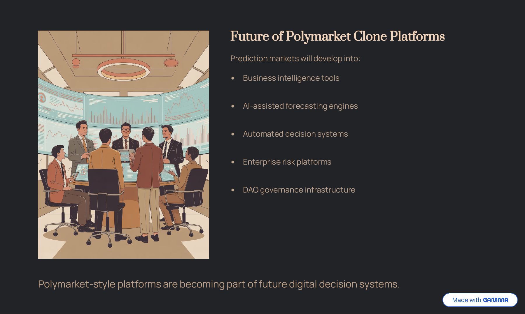 Business intelligence tools AI-assisted forecasting engines Automated decision systems Enterprise risk platforms DAO governance infrastructure Polymarket-style platforms are becoming part of future digital decision systems.