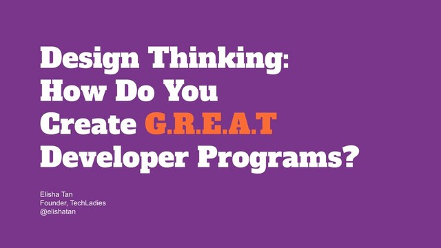 Tech talks, hackathons, webinars, workshops... With so many ways to engage with developers, how do you decide on how and what to do in order to achieve specific goals? In this talk, I will share a people-centric process (inspired by the design thinking methodology) to creating developer programs that I've developed over the years building communities in Asia. I will walk you through this methodology through the lens of designing programs aimed at increasing gender diversity in tech.