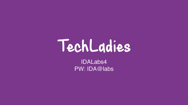 TechLadies IDALabs4 PW: IDA@labs