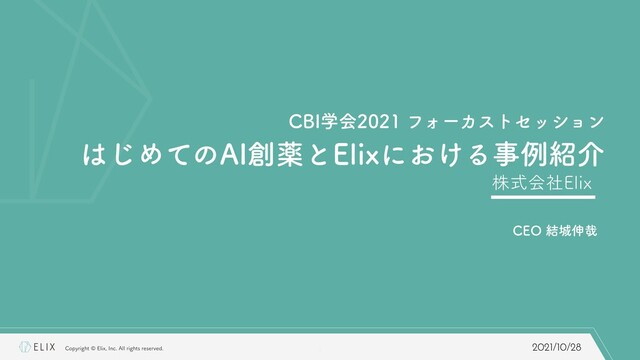 Elix, CBI 2021, フォーカストセッション, はじめてのAI創薬とElixにおける事例紹介