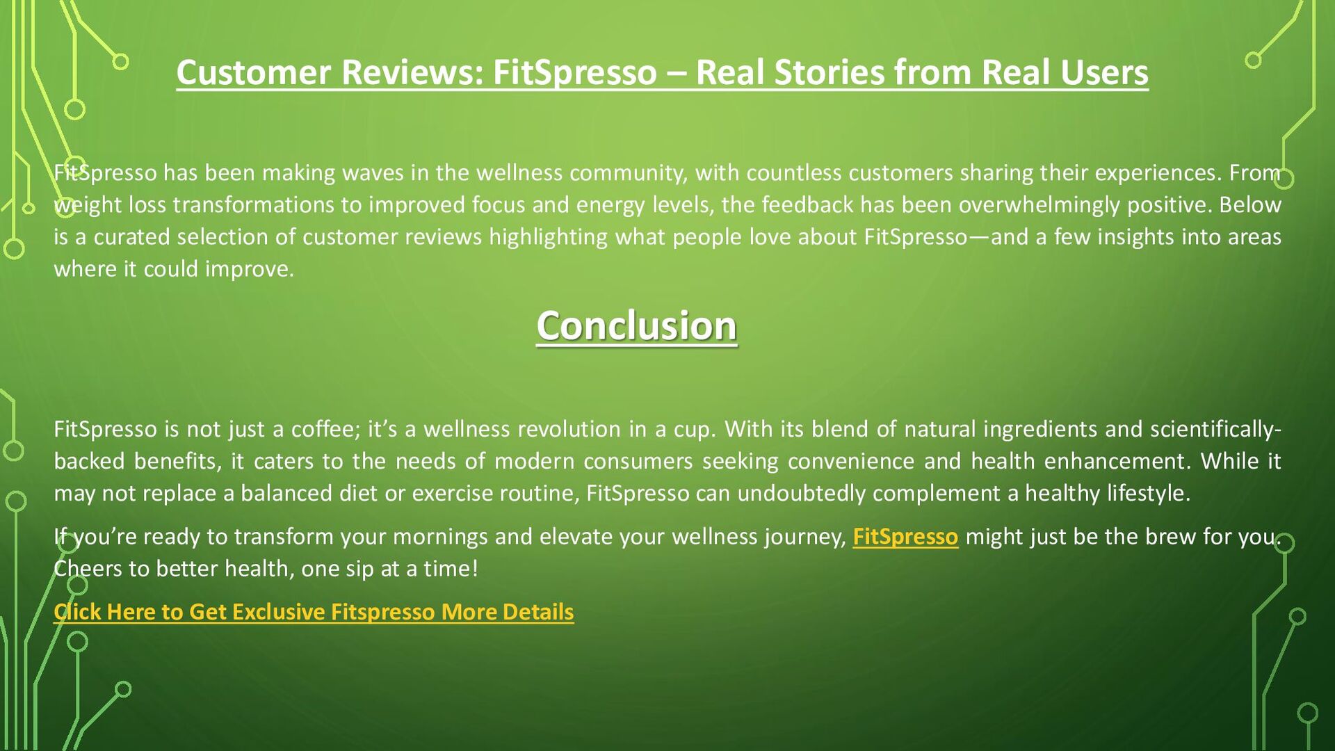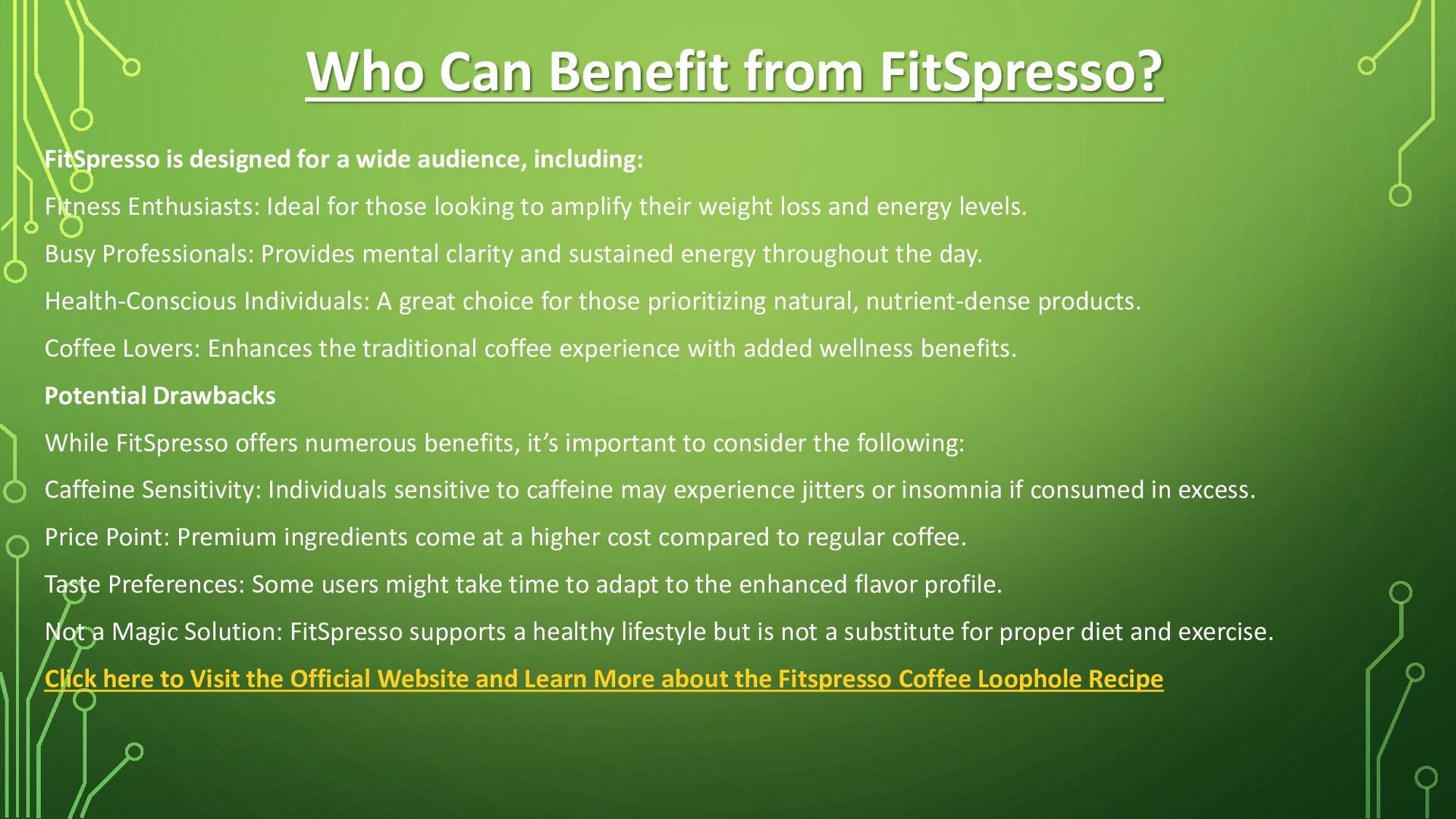 In the ever-evolving world of health and wellness, FitSpresso emerges as a game-changer. Positioned as a coffee-based supplement, FitSpresso blends the pleasure of drinking coffee with a myriad of health benefits. It’s not just a beverage; it’s a lifestyle upgrade. Let’s delve into the details of FitSpresso, exploring its composition, benefits, potential drawbacks, and why it’s creating a buzz among health enthusiasts.