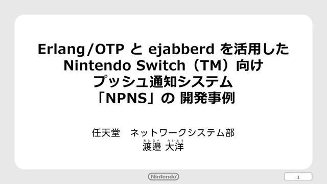 私たちは、家庭用ゲーム機 Nintendo Switch (TM) 向けに、プッシュ通知のシステム「Nintendo Push Notification Service (NPNS)」を開発・運用しています。
