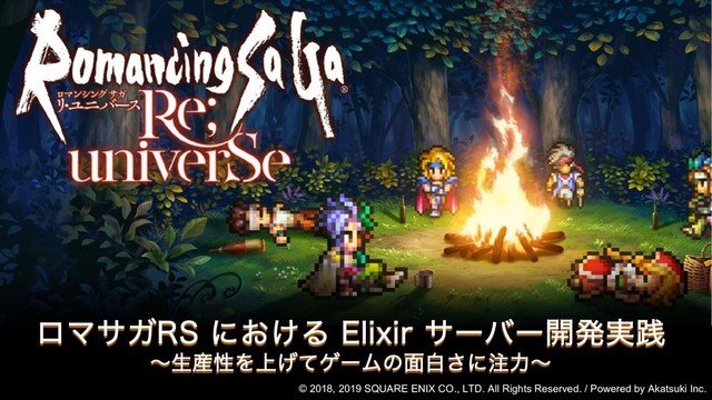 「ロマンシング サガ リ・ユニバース」( ㈱スクウェア・エニックスより配信)は、Elixir でサーバーを開発しました。アカツキとして Elixir でゲームをリリースするのは初めてでしたが、ETS を用いたオンメモリデータや、Dialyzer による型チェック、加えて Erlang VM の高い並列性を活用することで、安全な作りと高速なレスポンスタイムを担保しながら機能開発をスピーディに進めることができ、ゲームの面白さに注力することができました。