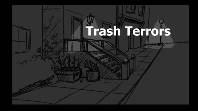 A young girl, with an unknown pursuer, braves the night to throw away the garbage.